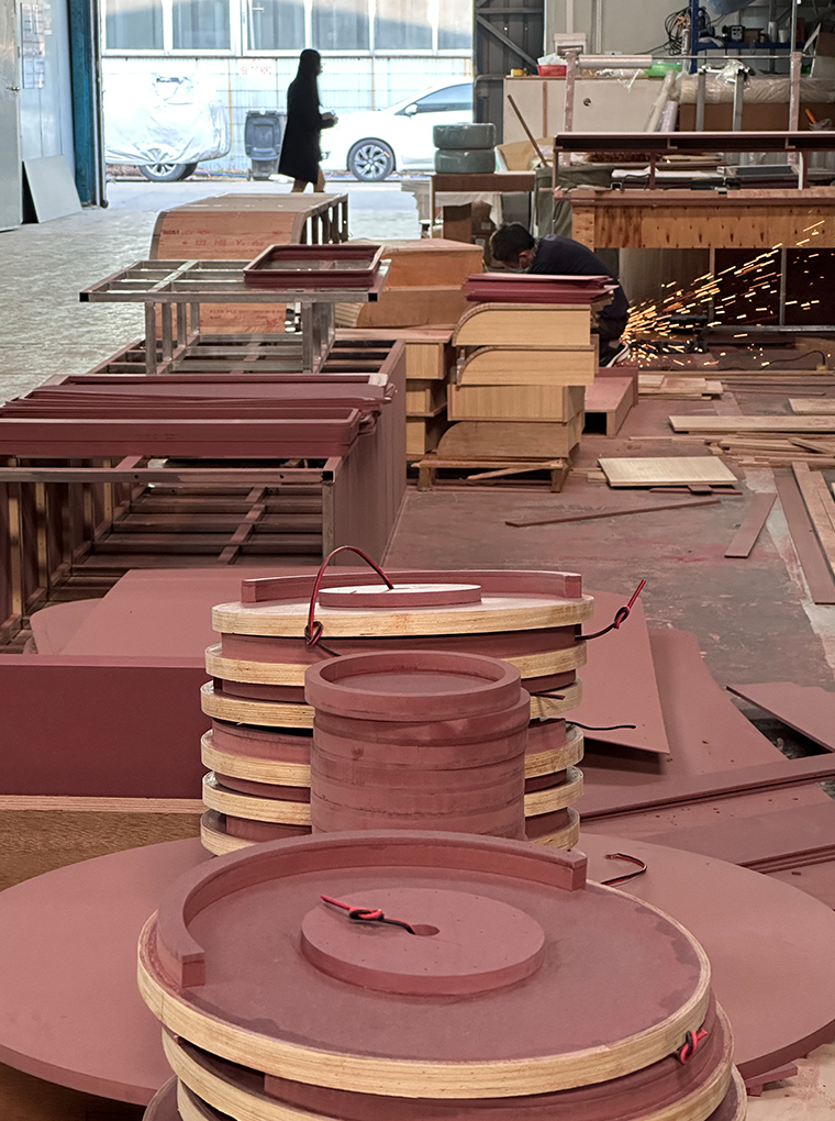 Guangzhou Aoke Intelligent Display has a modern intelligent production base covering an area of 13,000 square meters, equipped with six major production workshops, covering a full range of production processes such as crafts, wood art, paint, hardware, acrylic and installation. Among them, a dust-free paint workshop of 800 square meters is specially set up to ensure the high quality of product surface treatment. By introducing high-end equipment such as advanced German laser cutting machines, 3D engraving machines, diamond polishing machines, electronic cutting saws and fully automatic edge banding machines, we have built a digital production line, which not only optimizes the production process, but also significantly improves the specification accuracy of customized products, effectively shortens the production cycle, and improves production efficiency. This series of optimization measures aims to reduce customer costs and provide customers with better quality and more efficient product solutions.